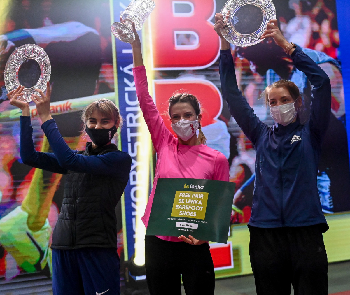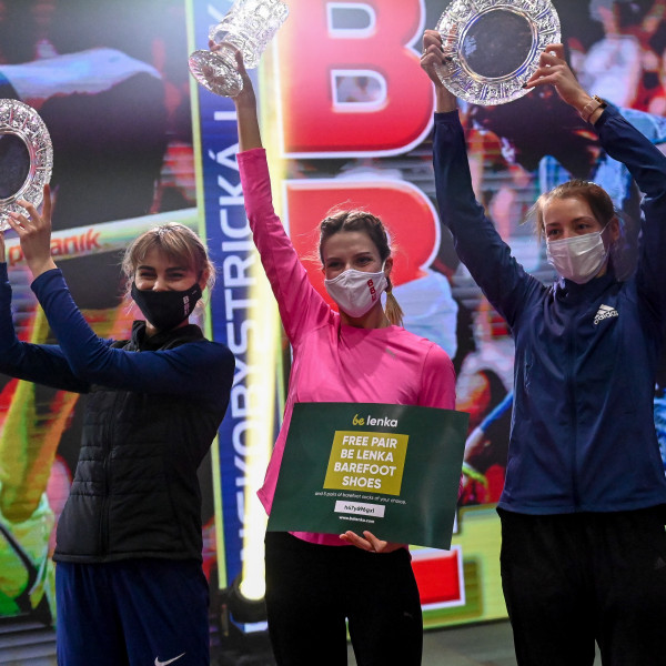 Foto č.3 Prvýkrát v histórii TIPOS Banskobystrickej latky v roku 2021 stáli na stupni víťazov pretekárky jednej krajiny – Ukrajiny. Zľava druhá Julia Levčenková, víťazka Jaroslava Mahučichová a tretia Karyna Demidik