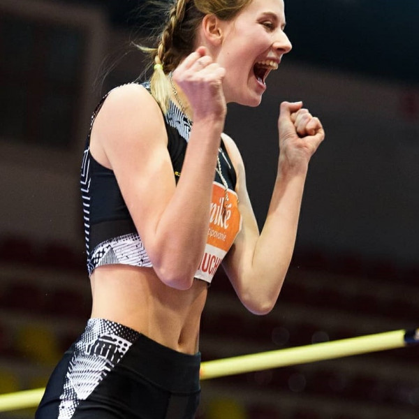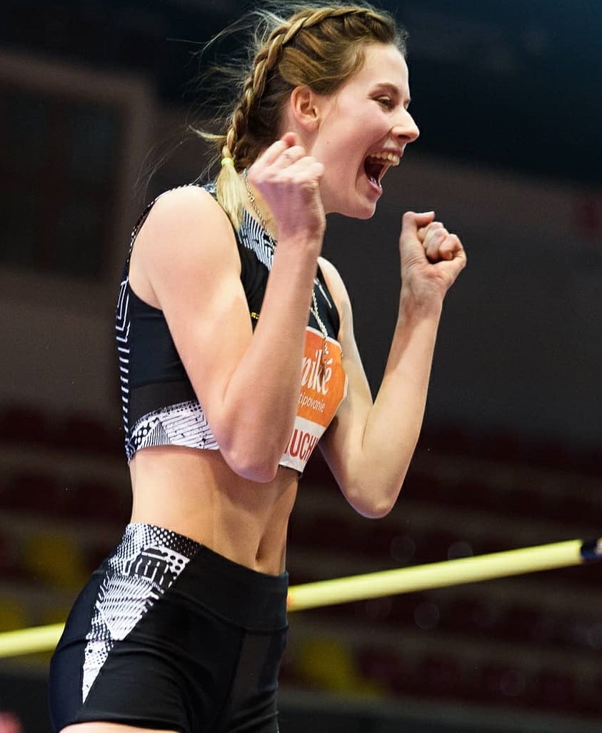 Foto č.2 Radosť Jaroslavy Mahučichovej po víťaznom skoku a utvorení rekordu BBL 206 cm v roku 2021